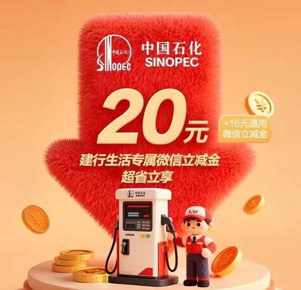 建行微信立减金42元,可充中石油、中石化