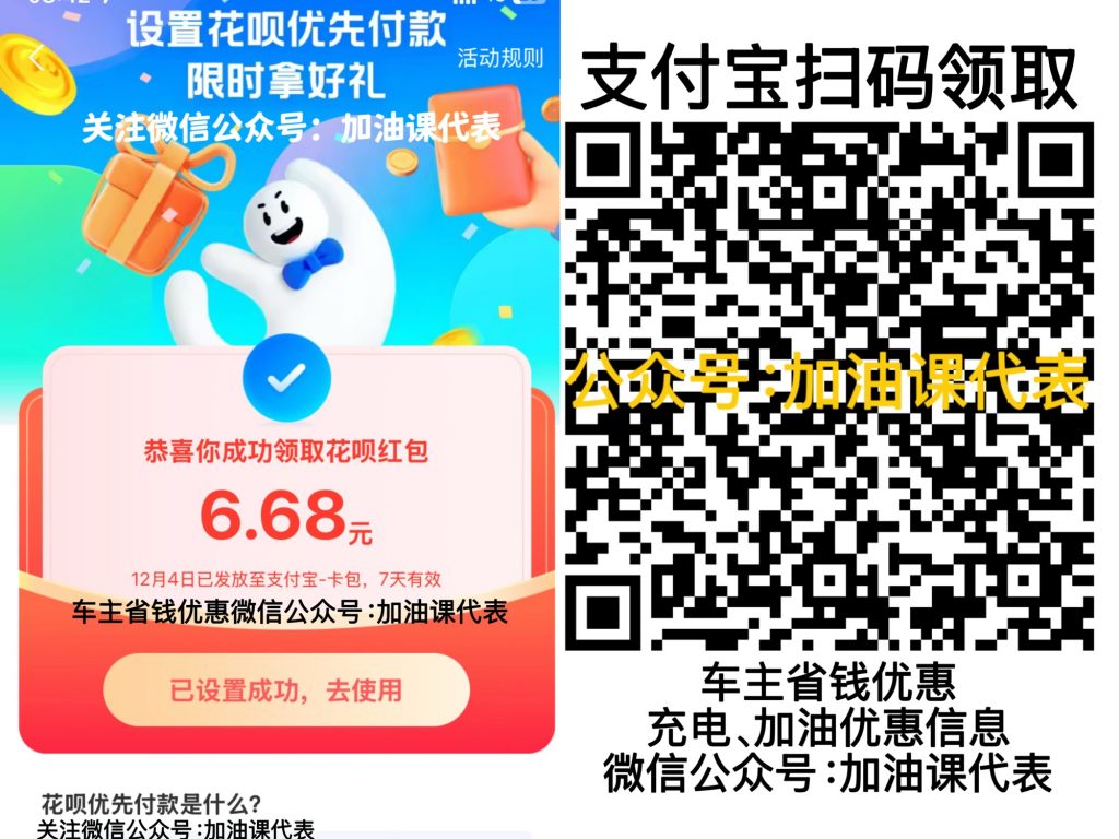 参与方法,支付宝扫码领取6.68元花呗支付红包